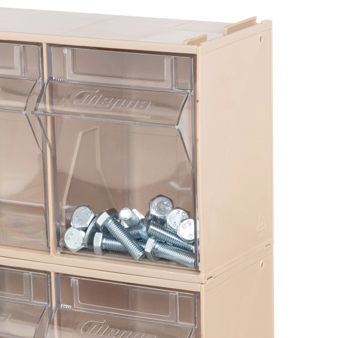 Короб откидной F-600-5-B, 600х140х168 мм 5 ячеек, бежевый / прозрачный, служит для хранения мелкоштучных предметов. Данная система хранения не подвержена случайному опрокидыванию. Откидные ячейки обеспечивают быстрый доступ к необходимым предметам. В случае необходимости полного высыпания или наполнения короб легко извлекается. Полезный внутренний размер каждой ячейки 108х98х107мм.