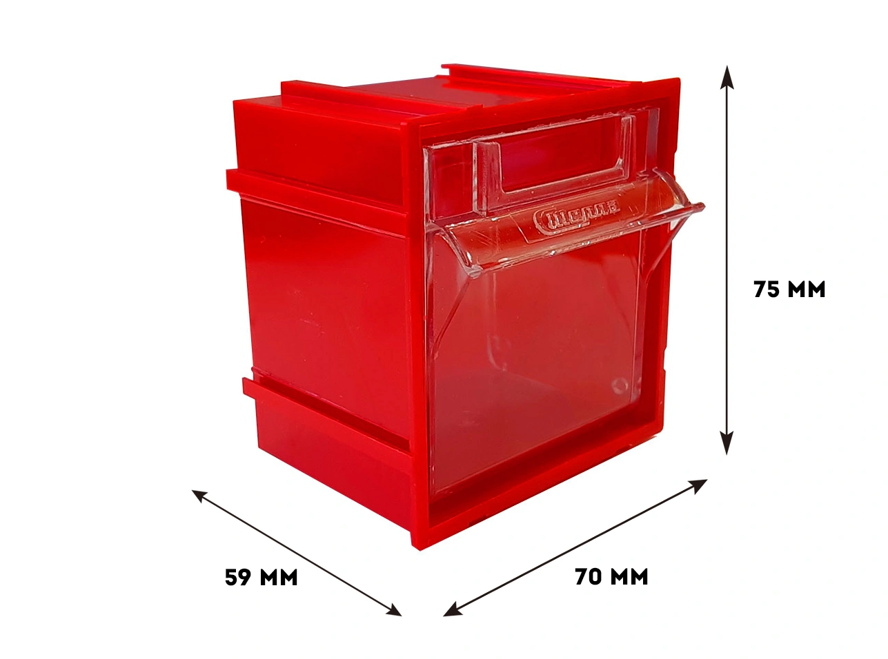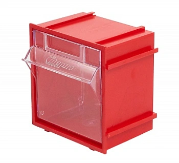 Короб откидной Стелла-техник F-70-1 (70х60х76мм.) красный, прозрачный служит для хранения мелкоштучных предметов. Данные короба с помощью специальных пазов соединяются друг с другом по всем четырем сторонам, благодаря чему, пользователь может выстроить систему хранения по желаемым ему габаритным размерам. Внутренние ячейки короба не подвержены случайному опрокидыванию. Откидная ячейка обеспечивают быстрый доступ к необходимым предметам. В случае необходимости полного высыпания или наполнения внутренние ячейки легко извлекается. Полезный внутренний размер ячеек 56х43х47мм. Специальный пластик, из которого выполнен короб, выдерживает значительные нагрузки и обладает оптимальной эластичностью. На задней стенке короба присутствуют отверстия для крепления, через которые можно легко прикрепить к стене как отдельно каждый короб, так и целый набор из любого количества собранных коробов. Обзорность содержимого сквозь прозрачные внутренние ячейки, наличие отсека для информационных бирок, легкое извлечение внутреннего короба для опустошения и наполнения, все это является неоспоримым преимуществом откидных коробов серии F. Температура эксплуатации от -10 до +70С.