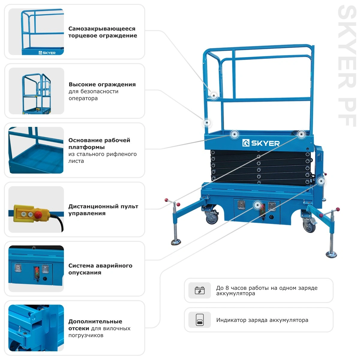 Ножничный подъемник PF0824 — компактный помощник для работы на высоте до 8 м!