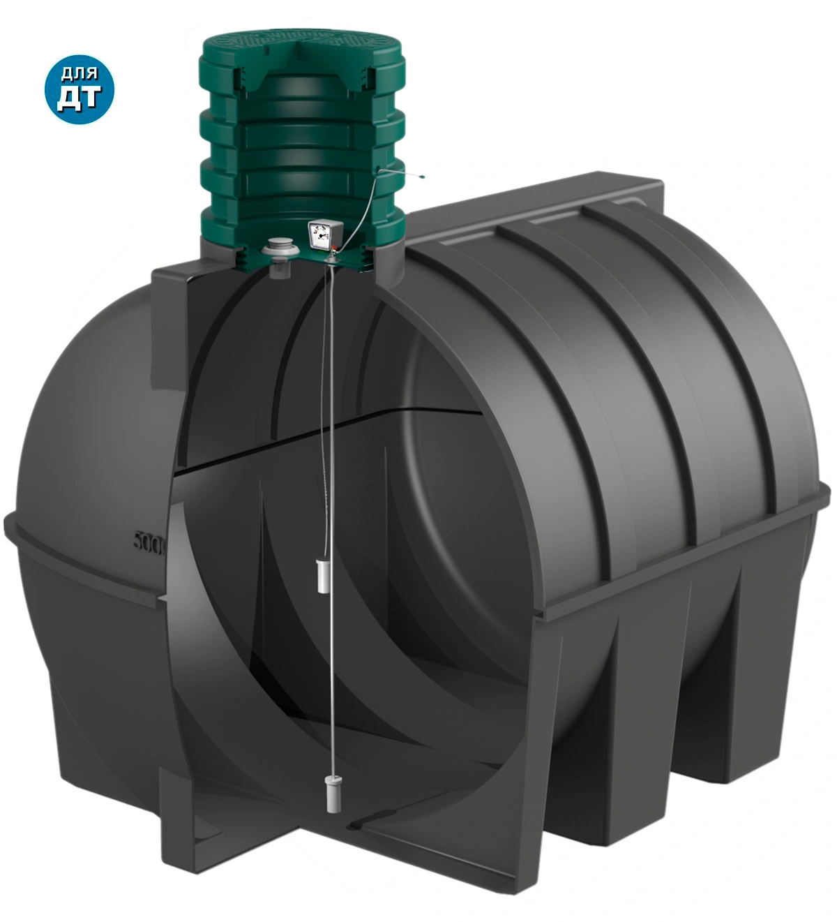 Накопительная ёмкость DT объёмом 2000 литров предназначена для подземного хранения дизельного топлива с возможностью дальнейшей выдачи. Все элементы конструкции, контактирующие с топливом, выполнены из химически стойкого полиэтилена, не подверженного коррозии и агрессивным веществам. Ёмкость поставляется в комплекте с базовой системой подачи топлива.