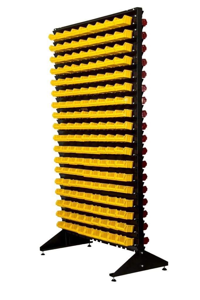 Стенд разработан специально для систематизации, хранения различных комплектующих, деталей, запчастей, крепежных и строительных материалов: болты, гайки, сверла, подшипники, метизы, фитинги, сантехника, зажимы, заклепки и т.д.