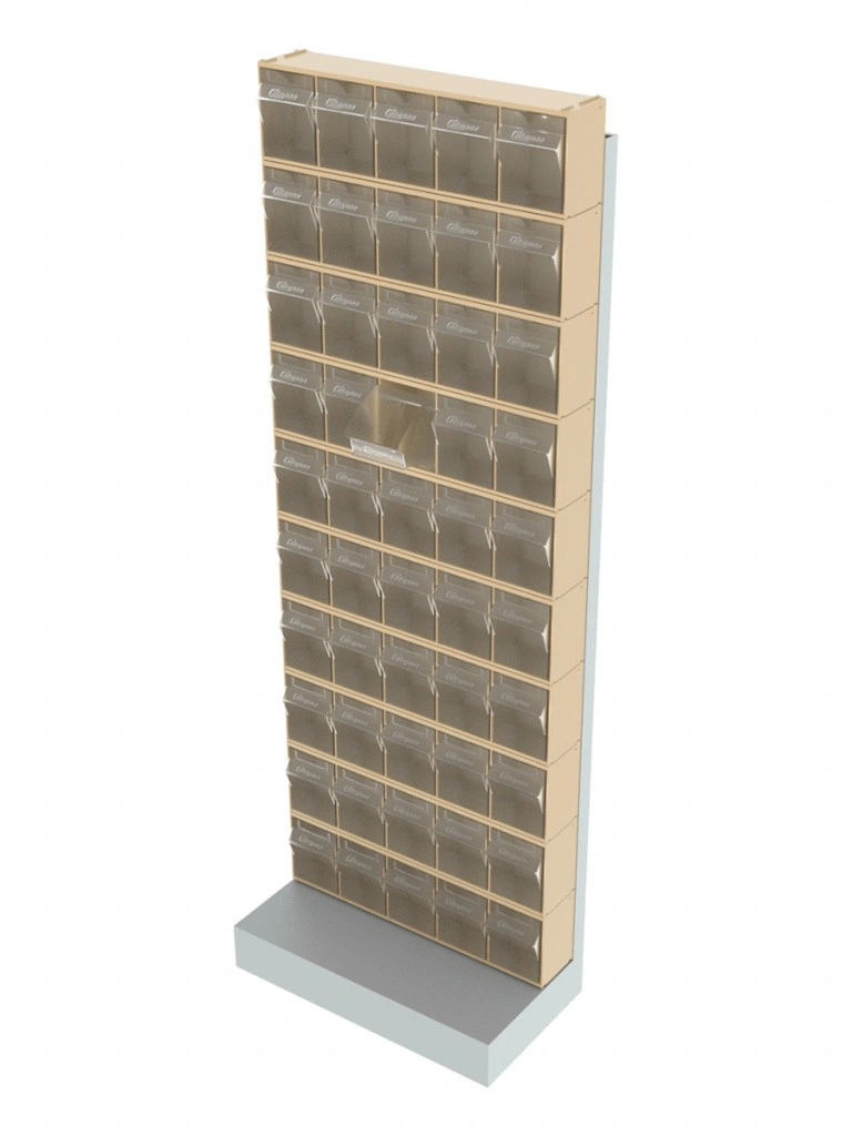 Стойка бежевая напольная Стелла-техник 404-00-00-10-B (610х325х1650) представляет собой удобную систему хранения на основе откидных коробов. Стойка подойдет для выставочных залов, магазинов, офисов, складов. Комплектация: Рама FOX (610х325х1650) V404 напольная односторонняя с основанием - 1 шт; Короб откидной Стелла-техник F-600-5 , 600х140х168мм, 5 ячеек, красный, прозрачный - 10 шт.; Упаковка. Преимущества: Металлическое основание; Значительная устойчивость; Хорошая вместимость; Длительный срок службы.