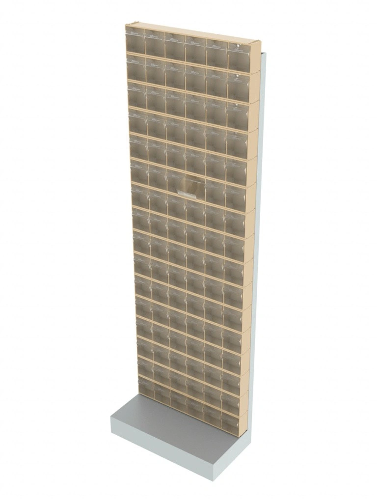 Стойка бежевая напольная Стелла-техник 405-00-16-00-B (610х325х1850) представляет собой удобную систему хранения на основе откидных коробов. Стойка подойдет для выставочных залов, магазинов, офисов, складов. Комплектация: Рама FOX (610х325х1850) V405 напольная односторонняя с основанием - 1 шт.; Короб откидной Стелла-техник F-600-6 , 600х96х112мм, 6 ячеек, красный, прозрачный – 16 шт.; Упаковка. Преимущества: Металлическое основание; Значительная устойчивость; Хорошая вместимость; Длительный срок службы.
