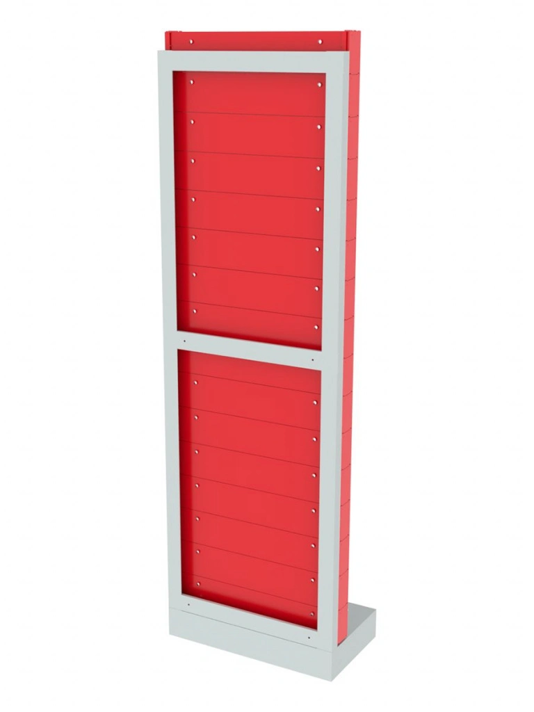 Стойка напольная Стелла-техник 405-00-16-00 (610х325х1850) представляет собой удобную систему хранения на основе откидных коробов. Стойка подойдет для выставочных залов, магазинов, офисов, складов. Комплектация: Рама FOX (610х325х1850) V405 напольная односторонняя с основанием - 1 шт.; Короб откидной Стелла-техник F-600-6 , 600х96х112мм, 6 ячеек, красный, прозрачный – 16 шт.; Упаковка. Преимущества: Металлическое основание; Значительная устойчивость; Хорошая вместимость; Длительный срок службы.