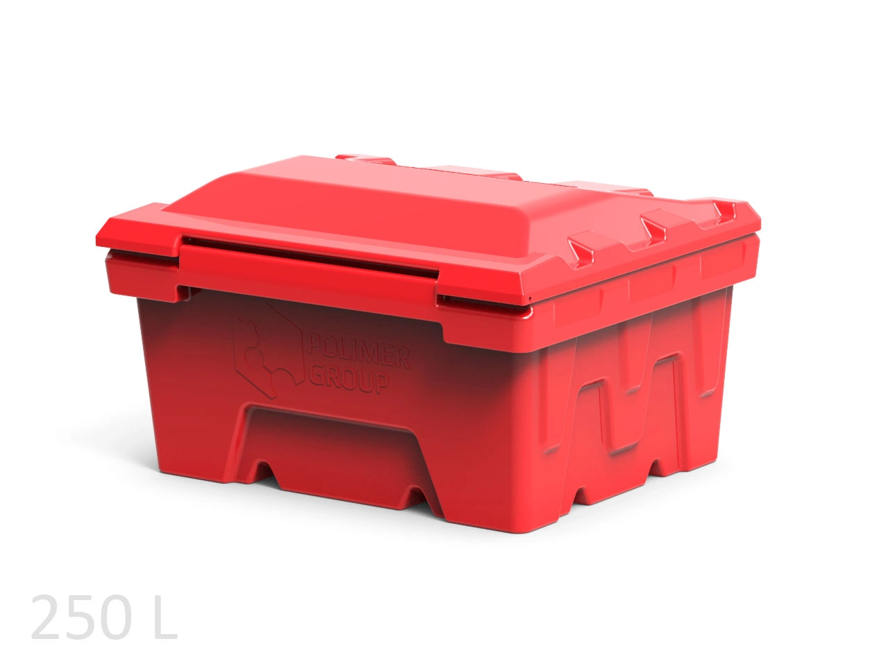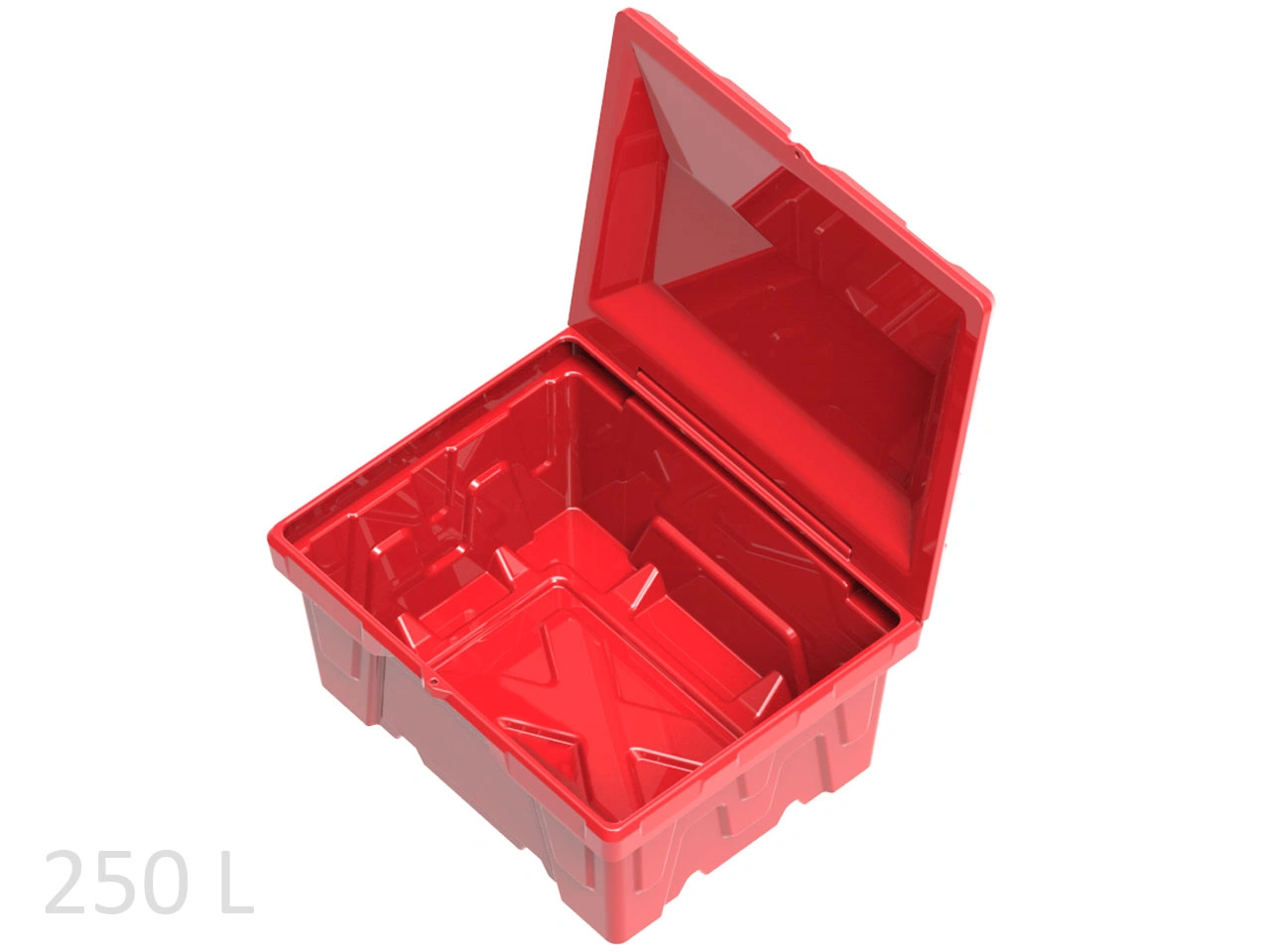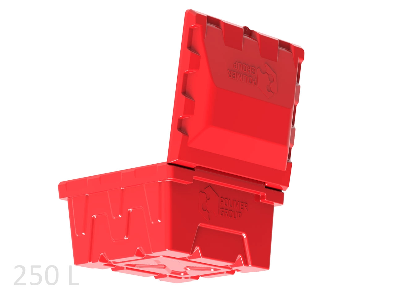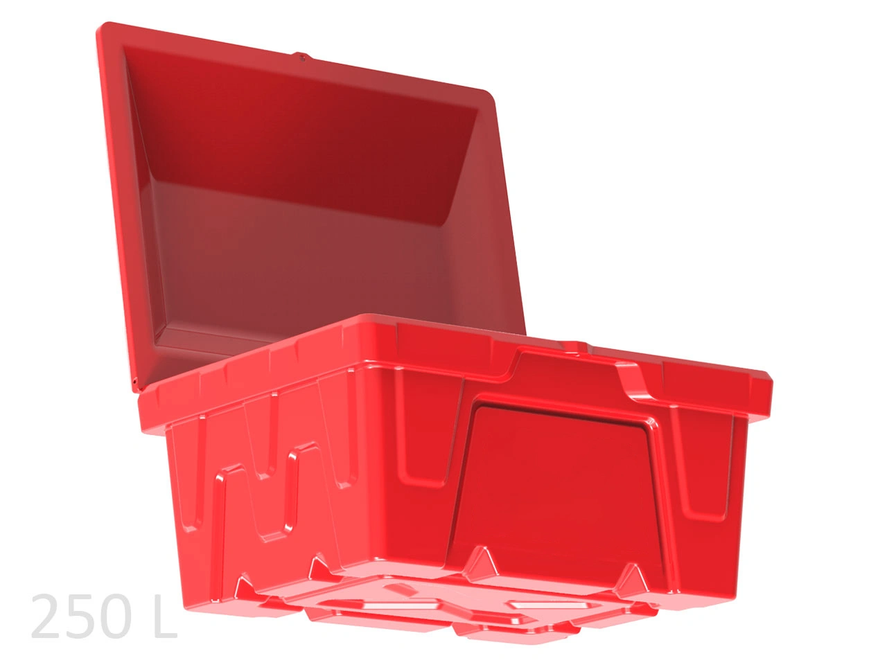 Объем контейнера для песка 250 л. Предназначен для хранения песка, применяемого для тушения пожаров на заправочных станциях. Изготовлен из полиэтилена методом ротоформования, что придает особую прочность.